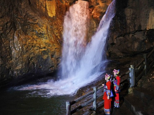 那雄浑壮丽的气势惊天动地,犹如两位浪漫的情侣难舍难分,为国内洞穴中仅有的一大奇观。